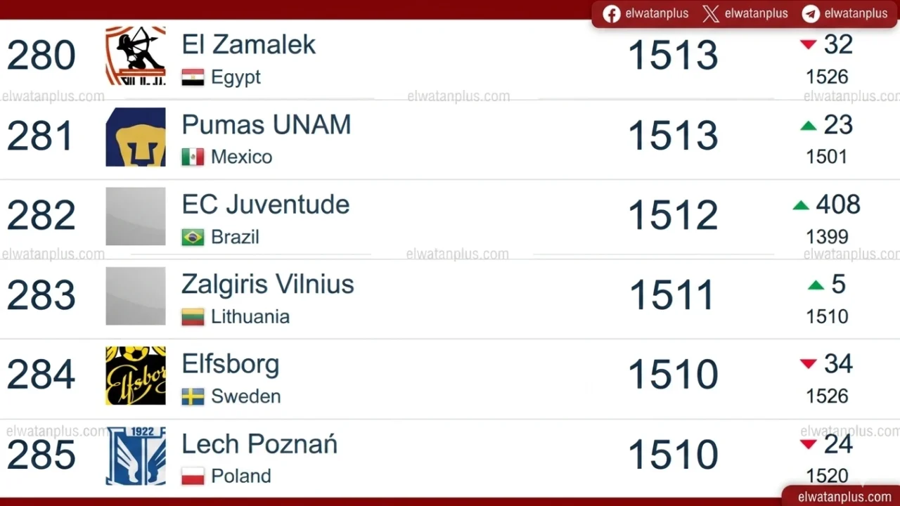 في المقابل واصل بيراميدز تقدمه محتلا المركز 77 عالميا ليصبح الأعلى بين الأندية المصرية، بينما تراجع الأهلي إلى المركز 104 عالميا بعد خروجه من قائمة أفضل 100 نادٍ، في مؤشر يعكس تغيرات واضحة في التقييمات الأخيرة للأندية المصرية
